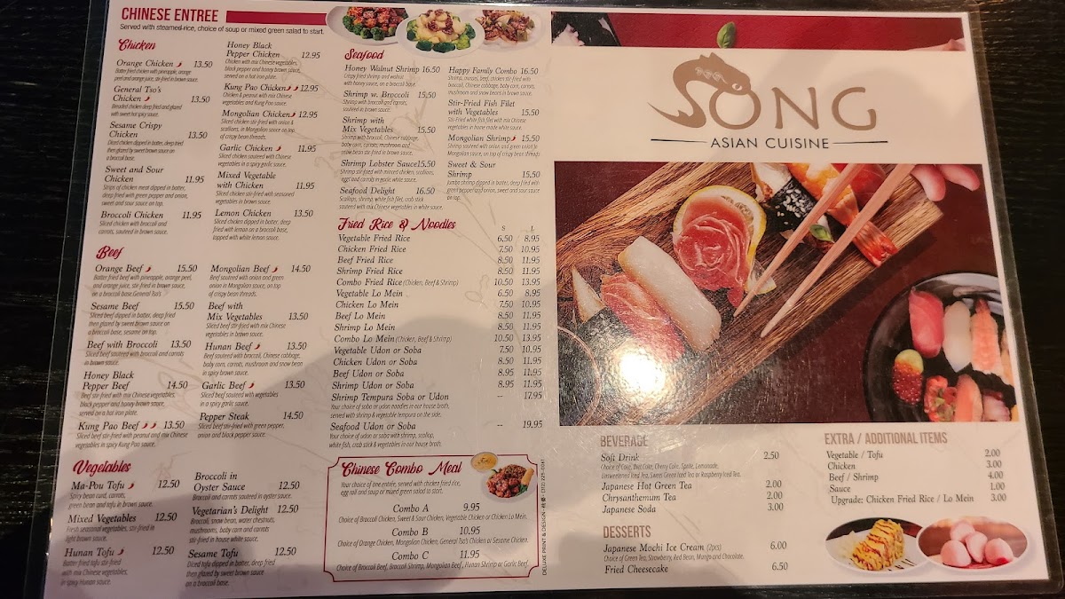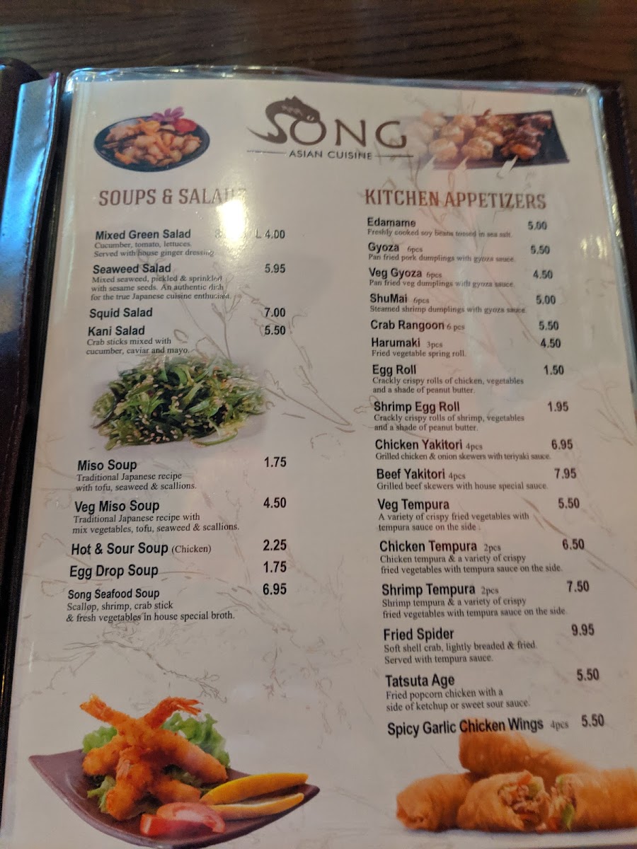At Song Asian Cuisine, the menu brings together the best of bold flavors and fresh ingredients, all infused with a love for authentic Asian dishes. From savory stir-fries to fragrant curries, each dish is crafted to deliver a truly satisfying experience. Whether you’re in the mood for tender sushi rolls or a steaming bowl of pho, there’s something to tempt every palate. With a focus on balancing flavors and textures, Song Asian Cuisine Menu invites you to explore traditional recipes alongside innovative twists that make each bite special. The perfect place to enjoy a cozy dinner with friends or indulge in a quick, flavorful meal, you’ll find yourself returning again and again to savor everything on offer.